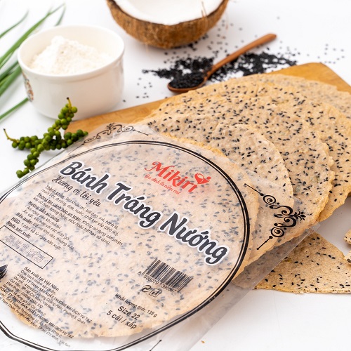 Bánh tráng nướng hay còn gọi bánh đa là một loại bánh rất được mọi người ưa chuộng, mang đậm bản sắc văn hóa ẩm thực Việt. Được làm chủ yếu từ bột gạo tẻ - loại nguyên liệu chính, thường xuyên xuất hiện trong thực đơn hằng ngày của người Việt với nhiều hình thức khác nhau như bún, bánh tráng, phở,...Ngoài ra, còn có thêm các loại nguyên liệu khác như mè, dừa, tôm, lạc,...giúp bánh thêm phần đậm đà, hấp dẫn. Bánh tráng nướng Mikiri với công thức độc đáo lại được nướng sẵn bởi dây chuyền hiện đại, khá tiện dụng cho các chị em nội trợ .