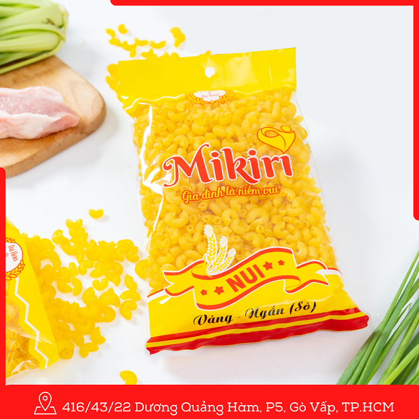 Để nui được dai ngon chất lượng thì bột mì chính là yếu tố mang tính quyết định. Phải lựa chọn loại bột mỳ thượng hạng với hàm lượng protein cao. Nui Mikiri được làm chủ yếu từ bột mỳ cao cấp hòa trộn với nước theo tỉ lệ phù hợp để nui có độ dai mềm nhất định, không bị bở nát khi cho vào nước nóng hoặc khi xào. Được sản xuất bởi các dây chuyền hiện đại, đóng gói ở dạng khô nên hoàn toàn không có hàn the, an toàn hơn nhiều so với các loại bún, phở tươi trên thị trường hiện nay. Ngoài ra, còn được đóng gói với nhiều hình dạng cùng khối lượng khác nhau, người tiêu dùng có thể thoải mái lựa chọn.